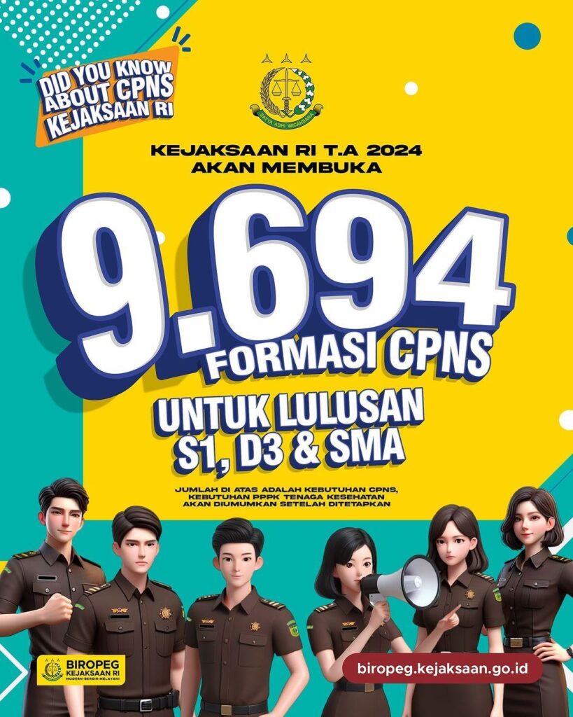 Dagdigdugser…. Jantung mulai berdebar, gairah mulai terbangun, mental mulai dipersiapkan, demi bangsa aku terpanggil. Apakah kalian termasuk dalam 9.694 CPNS tersebut? Kejaksaan mencari talenta terbaik untuk mengabdi demi bangsa dan negara.