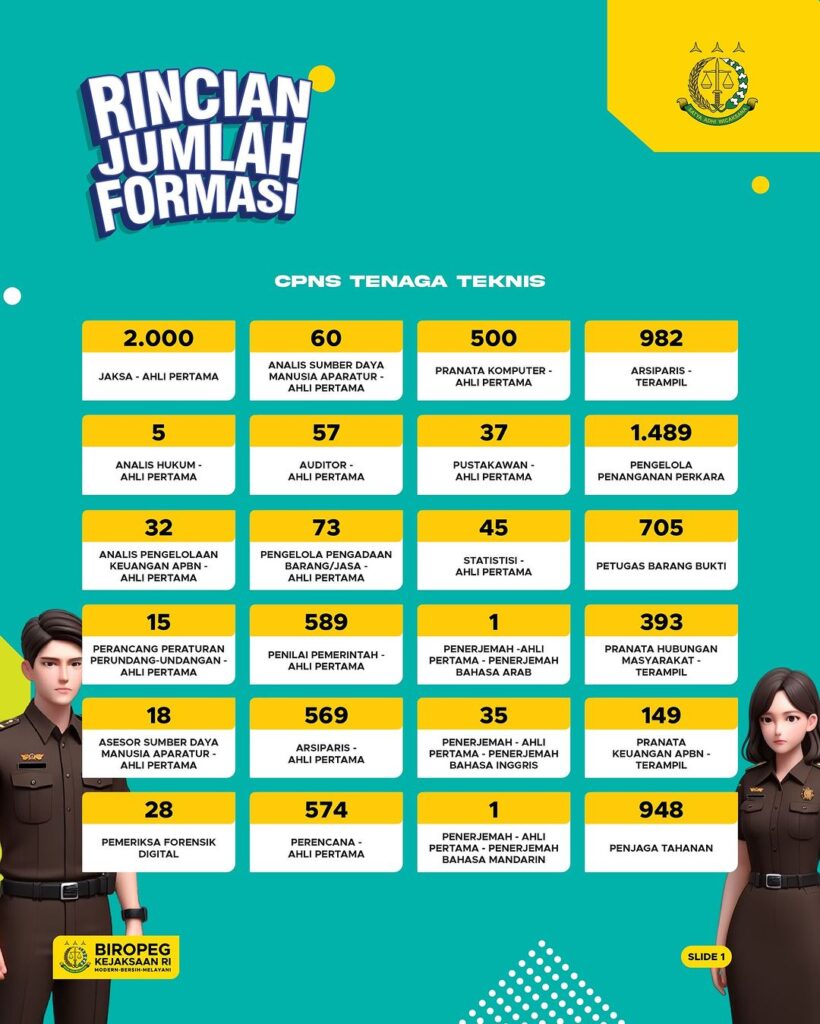 Rincian jumlah formasi CPNS Kejaksaan RI TA 2024 sudah rilis, sudah mulai ngincer mana yang sesuai dengan kamu? Tambah degdegan menunggu syarat dan kualifikasi pendidikannya apa saja? Tunjukkan semangatmu, ayo komen apa harapan kamu di CPNS Kejaksaan tahun ini!