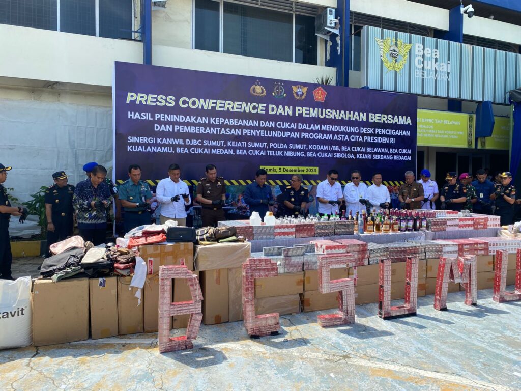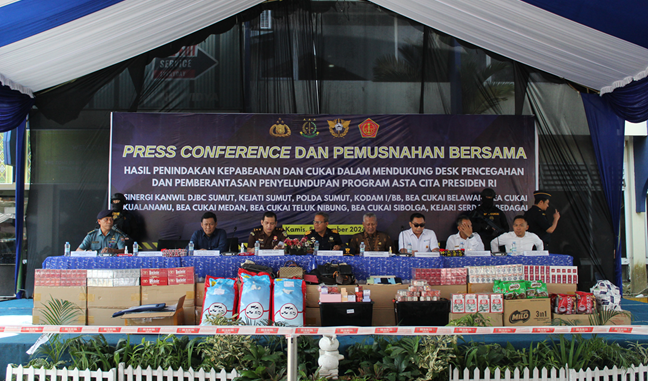 Kepala Kejaksaan Negeri Belawan bapak yang diwakilkan oleh Kepala Seksi Bidang Intelijen bapak Daniel Setiawan Barus,SH. menghadiri Pres Conference dan Pemusnahan Bersama Hasil dari Penindakan Kepabeanan dan Cukai Dalam Mendukung Desk Pencegahan dan Pemberantasan Penyelundupan dalam Program Asta Cita Presiden RI.
