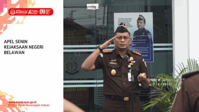 Bertempat di halaman kantor Kejaksaan Negeri Belawan, dilaksanakan apel pagi pegawai yang diikuti oleh seluruh pegawai dan PPNPN di lingkungan kantor Kejaksaan Negeri Belawan.