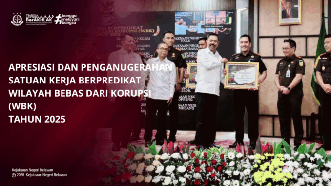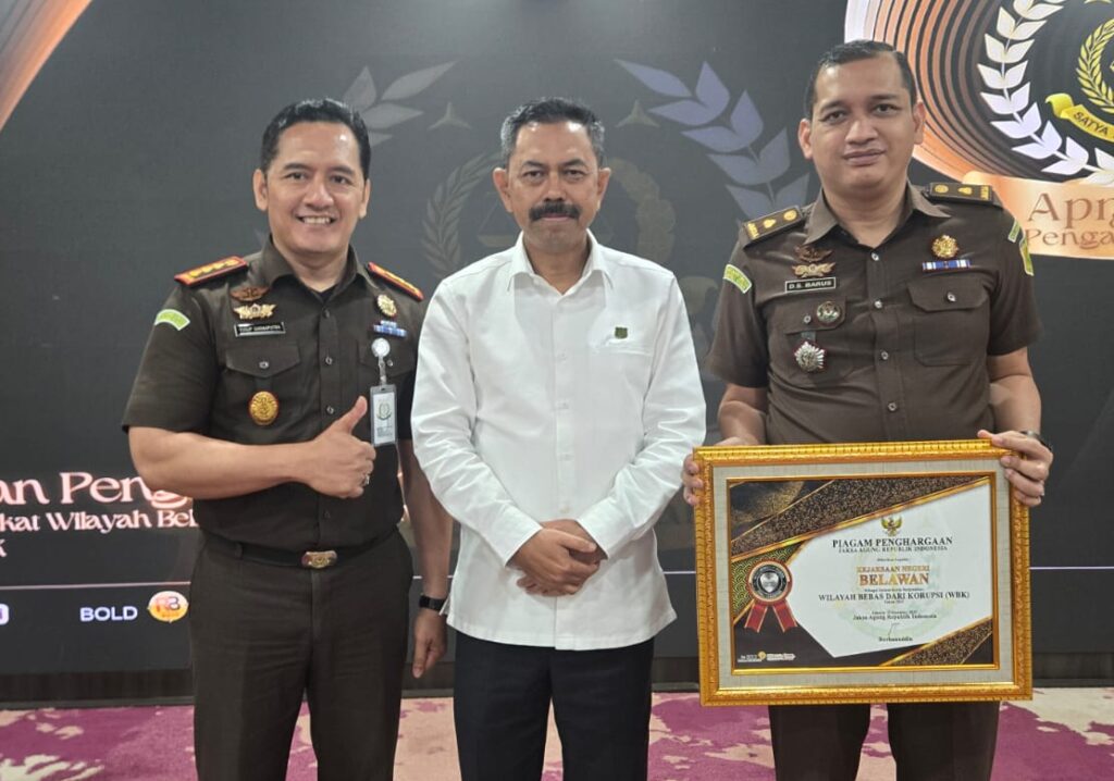 Rabu [17/12/2025], Kepala Kejaksaan Negeri Belawan Dr. Yusup Darmaputra, S.H., M.H., didampingi Kepala Seksi Intelijen Daniel Setiawan Barus, S.H., M.H., menghadiri langsung acara Apresiasi dan Penganugerahan Satuan Kerja Berpredikat Wilayah Bebas dari Korupsi (WBK) Kompetisi BerAKHLAK di Lingkungan Kejaksaan RI Tahun 2025.
