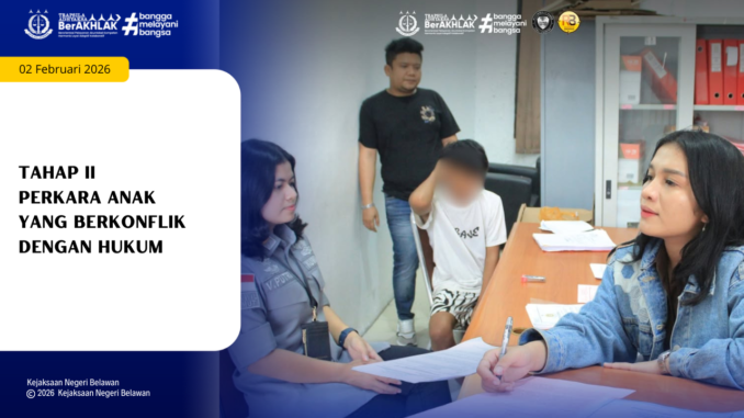 Senin [02/02/2026]Kejaksaan Negeri Belawan telah menerima pelimpahan Anak yang Berkonflik dengan Hukum (ABH) beserta barang bukti (Tahap II) dari Penyidik Polsek Medan Labuhan, sebanyak 1 (satu) berkas perkara dengan 1 (satu) orang Anak.