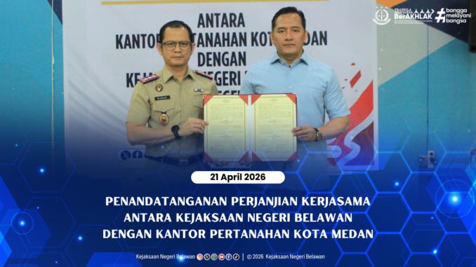 Selasa [21/04/2026], Kejaksaan Negeri Belawan melalui Seksi Perdata Dan Tata Usaha Negara melaksanakan Penandatanganan Perjanjian Kerja Sama dengan Kantor Pertanahan Kota Medan.